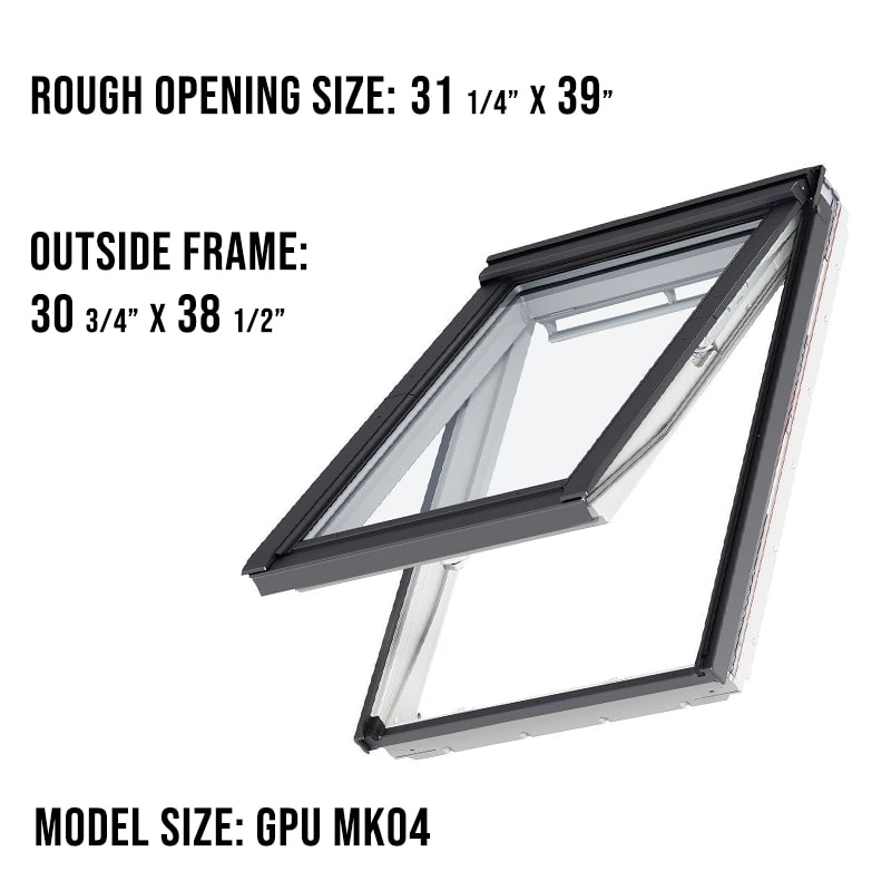 VELUX GPU MK04 Top Hinged Roof Window is a remarkable blend of spacious design and functional excellence. With its generous dimensions of 30 3/4″ x 38 1/2″ and a rough opening of 31 1/4″ x 39″, this model is an ideal choice for medium-sized rooms seeking to maximize natural light and air flow.